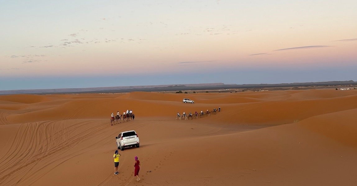 From Marrakech: It takes about 9-10 hours by car or private transfer. You can also take a bus (CTM or Supratours) to Merzouga. It’s a 12-hour overnight journey.